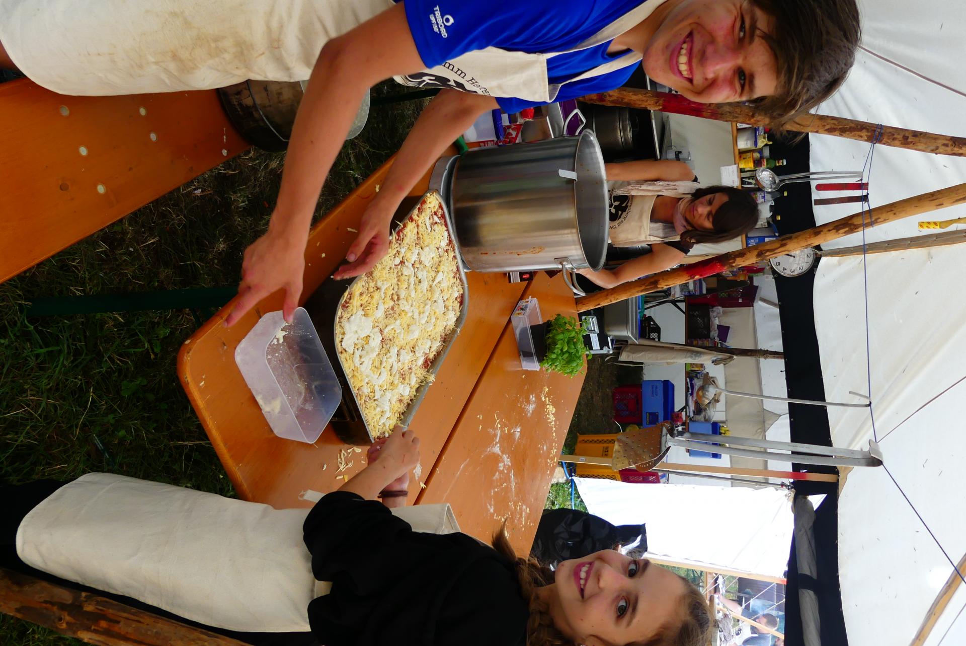 Verpflegt wurden die Kinder durch das zwei Mann starke Küchenteam, das mit Gaskochern immer ein vorzügliches Essen zubereitet hat. Auch bei den äußerst hochsommerlichen Temperaturen, die das Küchenzelt auf bis zu 42 Grad erhitzten, hat das Küchenteam mit Obst immer wieder für Erfrischung gesorgt. Abkühlung hat den Teilnehmern zudem noch die Ammer beschert, da es zur nächsten guten Bademöglichkeit nur 15 Minuten dauerte. Der Fluss war zwar etwas kalt aber er war hervorragend um dort seine Füße baumeln zu lassen und sich abzukühlen, auch wenn der ein oder andere Flip-Flop von der Strömung mitgerissen wurde. Sauberkeit ist wichtig, deswegen mussten die Kinder während des Lagers auch zwei Mal duschen gehen. Freundlicherweise standen dafür die Duschen des Tennisheims Herrenberg zur Verfügung.